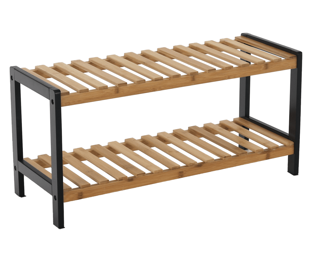 Stalak za cipele od bambusa i crnog MDF-a - prirodni bambus, crni MDF, 70x26x33,5 cm