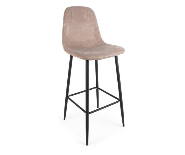 Barska stolica Irelia s naslonom, crne željezne noge i bež baršunasta presvlaka, 46 cm X 39 cm X 103 V X 76 V1