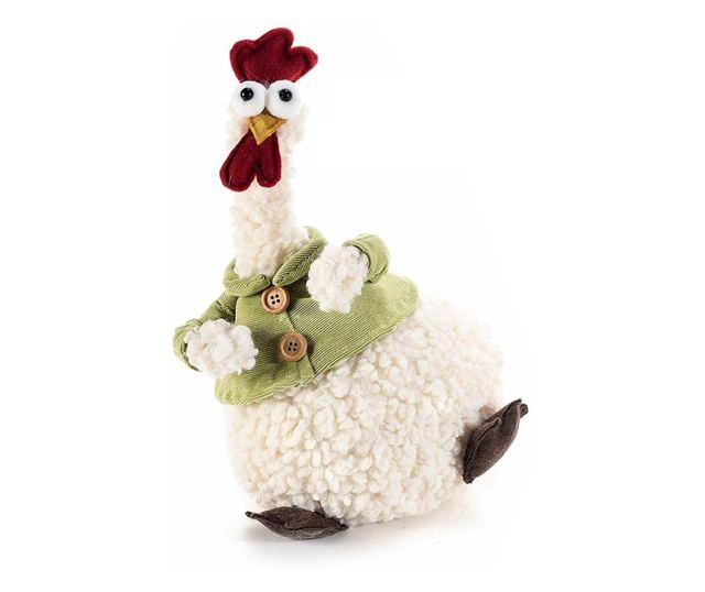 Tekstilna dekoracija kokoš s dimenzijama 20 cm x 15 cm x 33 cm