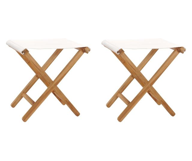 Sklopive stolice, 2 kom., krem bijele, masivno tikovo drvo i tekstil