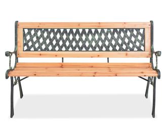 Ova ukrasna drvena vrtna klupa s nostalgičnim dizajnom ima visokokvalitetni okvir od drva i kovanog željeza. S ukrasnim naslonom od PVC-a, uistinu je privlačna i savršen je izbor za vaš vrt ili terasu. Također predstavlja savršen dodatak ispred vaše kuće.