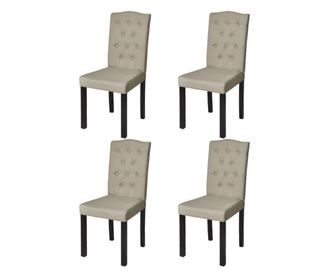 Četiri elegantne stolice ovog seta, s "chesterfield izgledom", imaju klasičan dizajn i diskretnu eleganciju. Ugodna presvlaka od tkanine s izgledom lana pruža udobnost pri sjedenju i savršeno se uklapa u mnoge varijante dizajna interijera.
