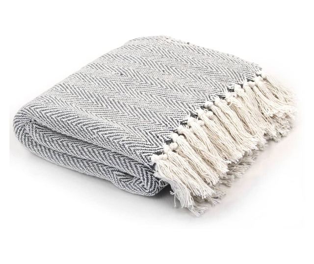 Pamučni pokrivač s uzorkom riblje kosti 220x250 cm sivi