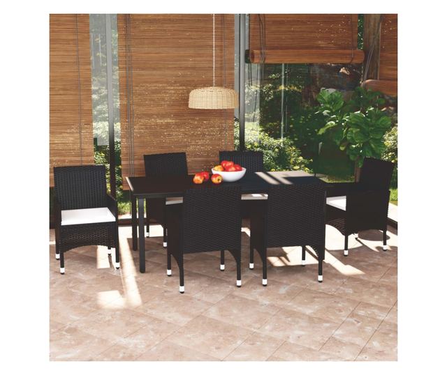 Vrtni namještaj s jastucima, 7 dijelova, crni, poliratan