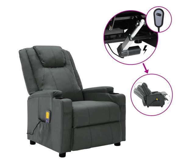 Električna podesiva masažna fotelja, antracit, eko koža