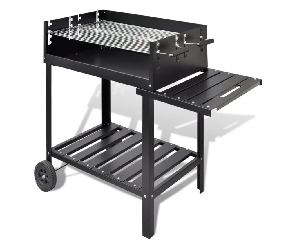 Roštilj je opremljen bočnom i donjom policom na koje se mogu pohraniti razni dodaci. Dva kotača omogućuju premještanje roštilja tamo gdje vam je potrebno.