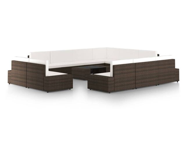 Vrtni namještaj s jastucima, 12 dijelova, smeđi, poliratan