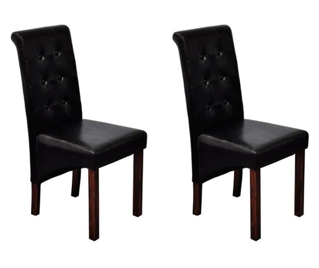 Ovaj set od 2 udobne kuhinjske stolice ima sjedala i naslone ergonomski oblikovane. Stolice se lako održavaju. Sjedala i nasloni su presvučeni umjetnom kožom. Noge su izrađene od tamno smeđeg lakiranog masivnog drva, a rubovi su zaobljeni radi sigurnosti.