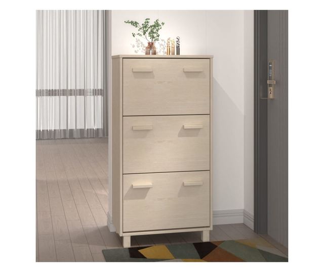 Ovaj stalak za cipele izrađen je od borovine, što ga čini stabilnim i čvrstim. Ima tri preklopne ladice, pružajući dovoljno prostora za pohranu cipela i održavanje cipela bez prašine. S ovim organizatorom cipela pri ruci, više nećete biti nervirani cipelama koje vam zatrpavaju pod.