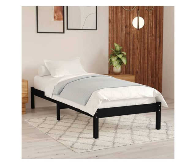 Krevetni okvir, crni, 90x200 cm, masivno borovo drvo