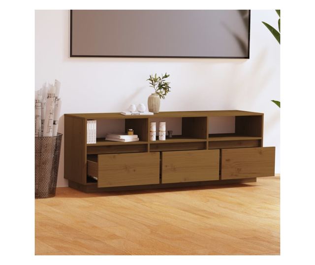 TV komoda, medeno smeđa, 140x37x50 cm, masivno borovo drvo