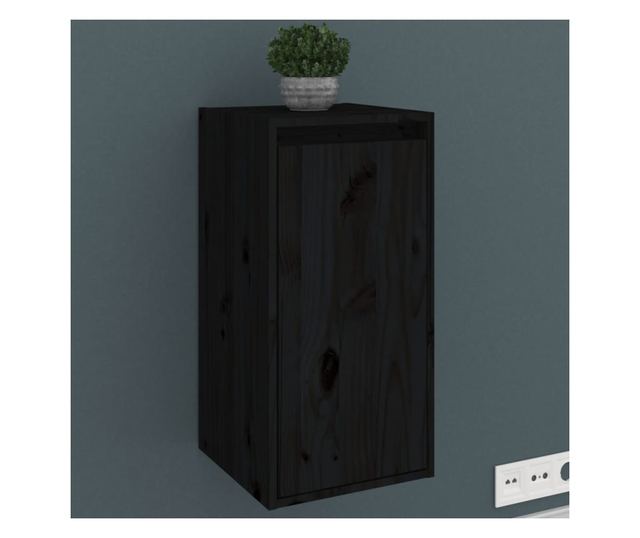 Zidni ormarić, crni, 30x30x60 cm, masivno borovo drvo