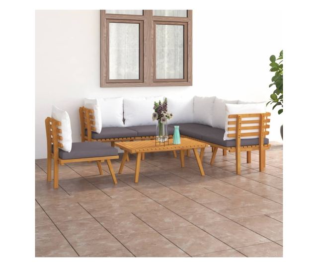 Set vrtnog namještaja s jastucima, 7 dijelova, masivno drvo akacije
