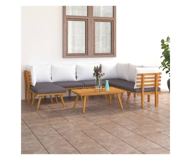 Vrtni set namještaja s jastucima, 8 dijelova, masivno drvo akacije