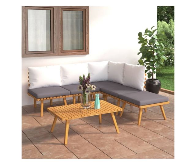 Vrtni set namještaja s jastucima, 6 dijelova, masivno drvo akacije