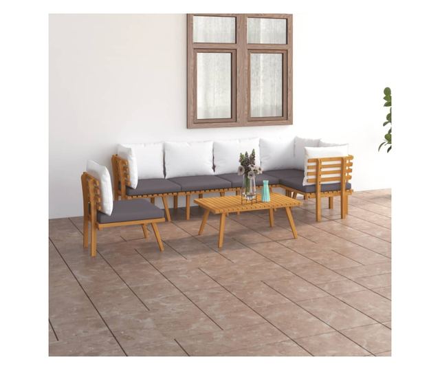 Set vrtnog namještaja s jastucima, 7 dijelova, masivno drvo akacije