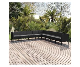 Vrtni namještaj s jastucima, 9 dijelova, crna, poliratan
