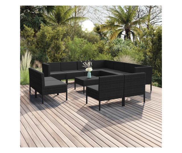 Vrtni namještaj s jastucima, 12 dijelova, crna, poliratan