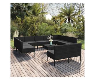 Vrtni namještaj s jastucima, 12 dijelova, crna boja, poliratan