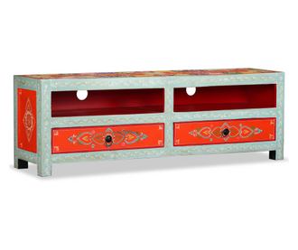Ovaj TV ormarić izrađen je od drva manga, koje je izdržljivo, masivno i stabilno, a ujedno i lijepo, a majstorska izrada dodaje spektakularnom retro stilu. HiFi ormarić ima bogate dekorativne detalje, ručno oslikane, koji odišu notom elegancije i obogaćuju profinjeni izgled. Posebne ručke olakšavaju otvaranje ladica i dodaju prepoznatljiv stil ormariću.