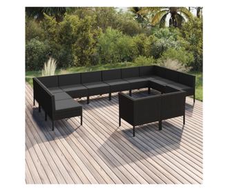 Vrtni namještaj s jastucima, 12 dijelova, crna boja, poliratan