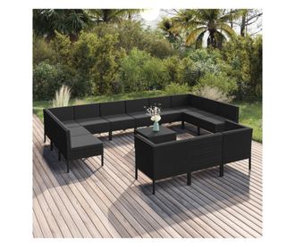 Vrtni namještaj s jastucima, 14 dijelova, crni, poliratan