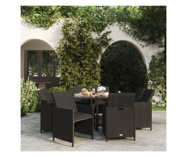 Vrtni namještaj s jastucima, 9 dijelova, crna, poliratan