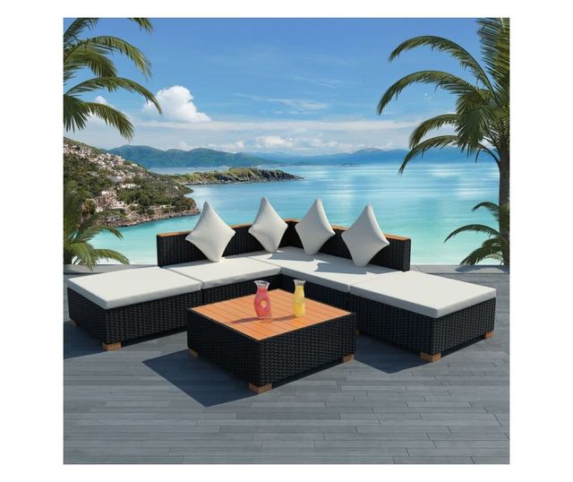 Vrtni namještaj s jastucima, 6 dijelova, crna, poliratan