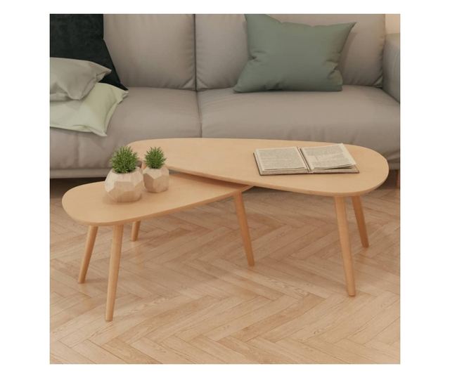 Izrađen od masivnog borovog drva, set stolova je čvrst i robustan. Čvrste MDF ploče pružaju stabilnu i sigurnu površinu na koju možete staviti pića, košaru s voćem, vazu ili druge ukrasne predmete. Stolovi se također mogu koristiti kao noćni ormarići, stalci za biljke, telefonski stalci ili konzole. Ovaj set stolova je vrlo svestran i ne zauzima prostor. Sastavljanje je jednostavno.