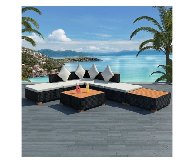 Vrtni namještaj s jastucima, 7 dijelova, crna, poliratan