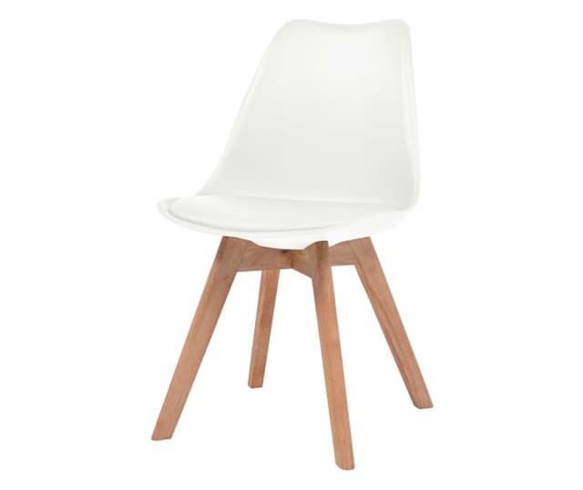 Stolice za blagovaonicu imaju ergonomski dizajn s integriranim naslonom i modernim, zakrivljenim izgledom. Vrlo su udobne zahvaljujući jastuku za sjedenje od umjetne kože. Podržane masivnim drvenim nogama, ove stolice su čvrste i izdržljive. Vrlo su jednostavne za sastavljanje.