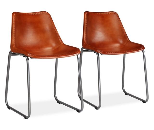 Stolice za kuhinju, 2 kom., smeđe, prirodna koža