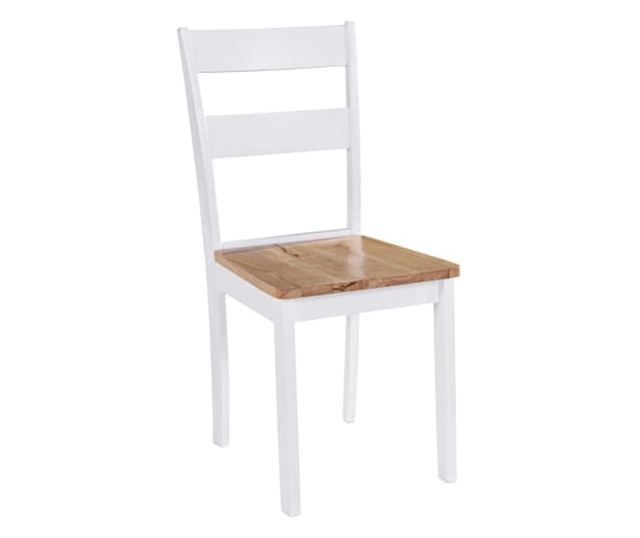 Masivno hevea drvo ima završnu obradu s bojom, kako na okvirima, tako i na sjedalima, kako bi se istaknula topla i bogata boja drva. Kontrast boja daje stolicama jednostavan i elegantan izgled.