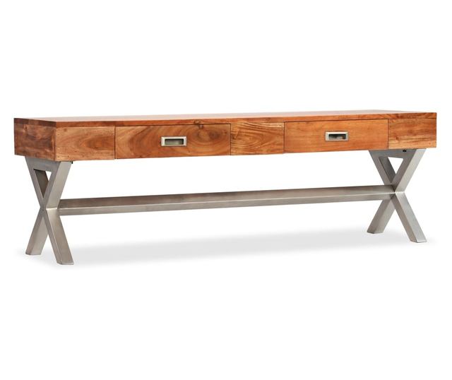 Ormarić je izrađen od visokokvalitetnog masivnog bagremovog drva, tropskog tvrdog drva, otpornog na vremenske uvjete i izdržljivog. Ormarić je poliran i lakiran te je dobio završnu obradu u boji palisandrovog drva. Svaki korak proizvodnog procesa provodi se s najvećom pažnjom, bilo da se radi o poliranju ili lakiranju. Umjetnost izrade i lijepa tekstura drva čine svaki komad namještaja jedinstvenim i malo drugačijim od ostalih. Okvir od elektrostatski obrađenog čelika dodaje dodatnu čvrstoću. Dizajn s dvije ladice također vam nudi dodatni prostor za pohranu malih predmeta, poput daljinskih upravljača, koje želite imati pri ruci.