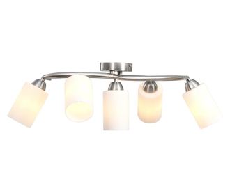 Lampa se lako može montirati na bilo koji strop s izdržljivom metalnom bazom. Pet kromiranih čeličnih cijevi s uvijenim uzorkom i sjenila u obliku konusa upotpunjuju elegantan izgled. Satinirani kromirani završetak daje suvremeni stil ovoj lampi, čineći je savršenom za bilo koji stil dnevnog boravka ili spavaće sobe. Također je lako održavati i čistiti vlažnom krpom.