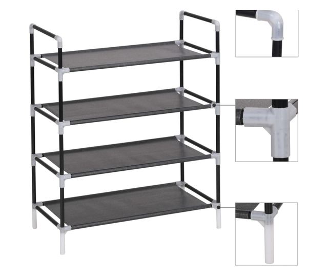 Ima cjevasti metalni okvir, koji je lagan, a ipak čvrst, što čini policu za cipele prilično izdržljivom i lakom za premještanje. Ima četiri prostrane police izrađene od ekološki prihvatljivog netkanog tekstila i nudi dovoljno prostora za organiziranje cipela bez da su na vidiku.