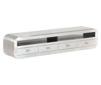 Ovaj TV ormarić u stilu zrakoplova izrađen je od masivnog drva manga, a njegova površina obložena je mozaikom panela od poliranog aluminija, ukrašenih vidljivim čeličnim vijcima, što mu osigurava trajnost. Glatki rubovi i retro ručke ladica daju jedinstven izgled TV ormariću Aviator.
