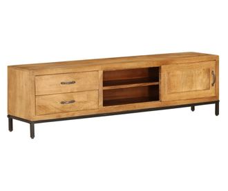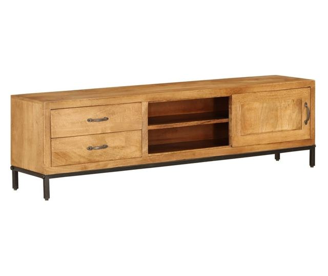 Ova TV komoda ručno je izrađena od mangovog drva, koje je čvrsto, stabilno, izdržljivo i lijepo, a zanatska izrada naglašava spektakularni retro stil. Svaki korak proizvodnog procesa provodi se s najvećom pažnjom, bilo da se radi o poliranju, bojanju ili lakiranju. Umjetnost izrade i prekrasna tekstura drva čine svaki komad namještaja jedinstvenim i malo drugačijim od sljedećeg. Čelične noge osiguravaju dodatnu stabilnost.