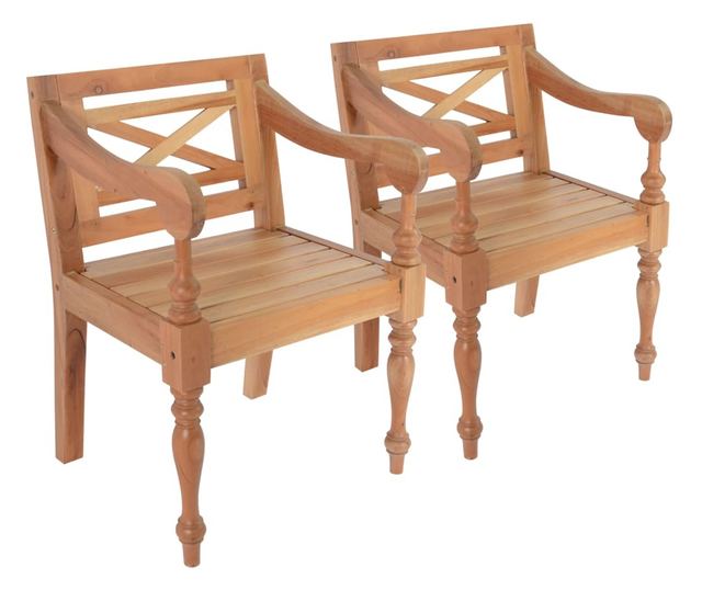 Stolice visoke kvalitete s elegantno zakrivljenim naslonima za ruke izrađene su od masivnog mahagonija, koji je vrlo stabilan i izdržljiv. Čvrste su i jednostavne za čišćenje, osiguravajući tako dugotrajnu upotrebu. Fotelje su jednostavne za sastavljanje.