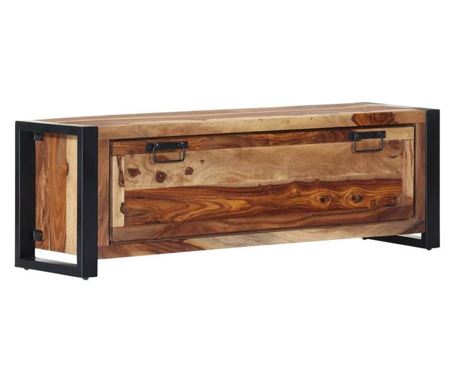 Ova kutija za cipele izrađena je od masivnog drva sheeshama, tropskog tvrdog drva poznatog po bogatoj teksturi, također poznatog kao ružino drvo ili palisander. Osim toga, ne deformira se i ne puca te ima prirodnu otpornost na truljenje. Zbog vještine izrade i prekrasne teksture drva, svaki komad namještaja je jedinstven i malo drugačiji od sljedećeg. S čeličnim nogama, stalak za cipele je vrlo čvrst i izdržljiv. Možete sjediti na njemu dok mijenjate cipele. Ova kutija za cipele ima 2 police s vratima, pružajući praktičan prostor za pohranu cipela.