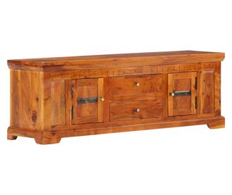 Ova komoda izrađena je od masivnog bagremovog drva s medenim završetkom, što je čini izuzetno stabilnom i izdržljivom. Svaka faza proizvodnog procesa izvedena je s najvećom pažnjom, bilo da se radi o poliranju, bojanju ili lakiranju. Umjetnost izrade i privlačna tekstura drva čine svaki komad namještaja jedinstvenim i malo drugačijim od ostalih. Zahvaljujući 2 ladice i 2 ormarića s vratima, komoda vam omogućuje da časopise, knjige, DVD-ove i multimedijske uređaje držite dobro organizirane i pri ruci.