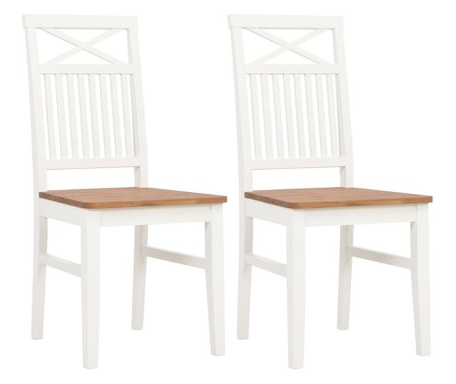 Ove kuhinjske stolice izrađene su od masivnog hrastovog drva, tvrdog drva s gustim vlaknima. Svaka od ovih stolica ima bijeli završni sloj koji joj daje lijep izgled. Stolice su izuzetno stabilne, izdržljive i privlačne. Osim toga, ove kuhinjske stolice su potpuno ručno izrađene, a zahvaljujući vještini izrade i finoj teksturi drva, svaki komad namještaja je jedinstven i malo drugačiji od ostalih. Svaka faza procesa izrade, bilo da se radi o poliranju, bojanju ili lakiranju, izvedena je s najvećom pažnjom. Paket isporuke uključuje 2 kuhinjske stolice.