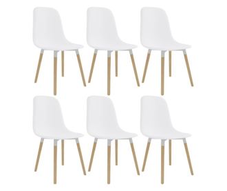 Stolice imaju ergonomski dizajn s integriranim naslonom i modernim zakrivljenim izgledom. Izrađene od čvrste plastike i podržane nogama od masivnog drva, ove privlačne stolice su čvrste i izdržljive. Osim toga, lako se sastavljaju.