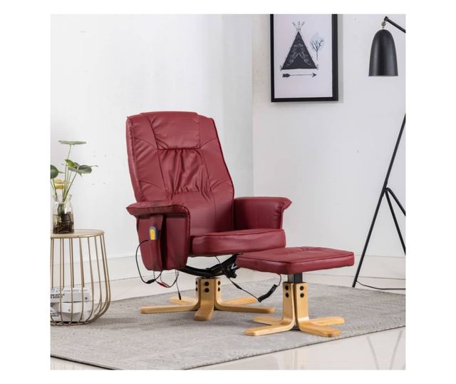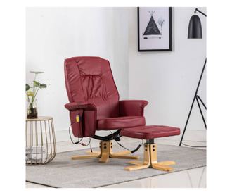 Naslonjač za masažu s tabureom, vinsko crvena, umjetna koža