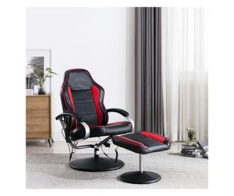 Naslonjač za masažu s naslonom, tabure, crno i crveno, umjetna koža