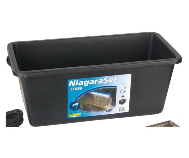 Ovaj set vodopada Niagara od Ubbinka uključuje sve komponente koje su vam potrebne za stvaranje nevjerojatne vodene dekoracije: oštrica vodopada od nehrđajućeg čelika, pumpa, dugačka cijev od 2 metra i rezervoar od 65 litara.