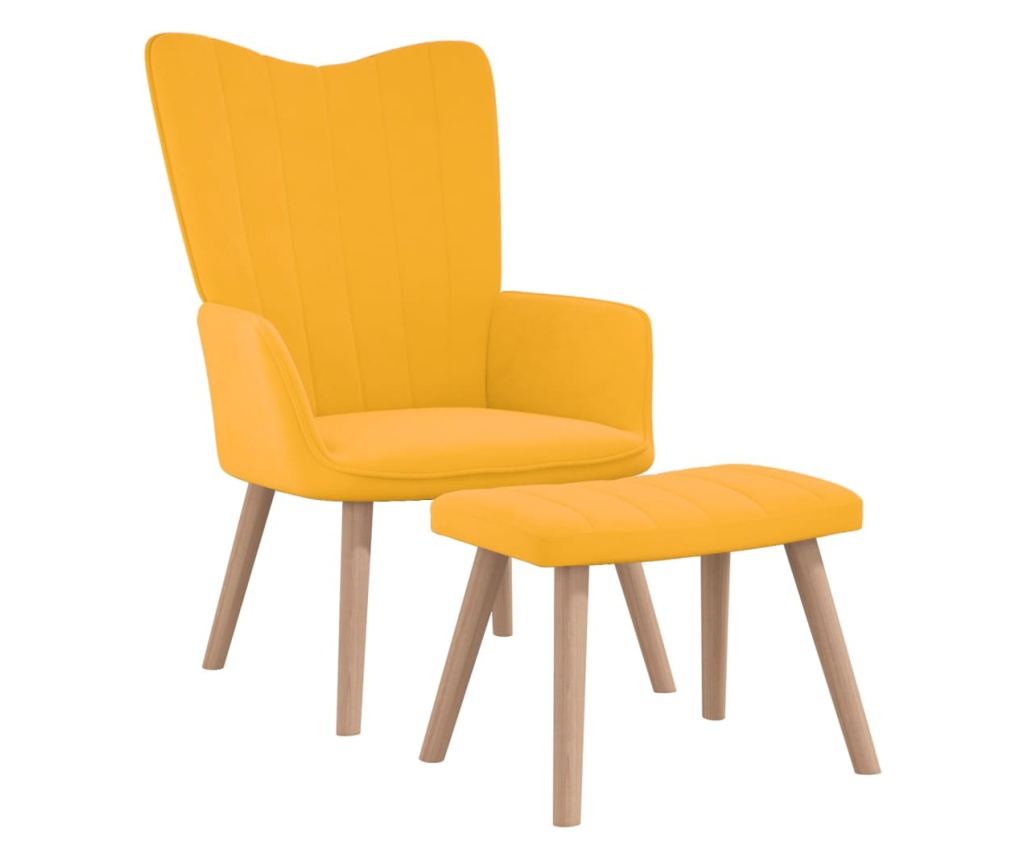 Ova fotelja, s linijama na naslonu, estetski je ugodna. Zbog pjene koja je obložena mekim baršunom, možete uživati u optimalnoj udobnosti tijekom sjedenja. Podržana čeličnim okvirom i drvenim nogama, stolica za opuštanje s tabureom je stabilna i izdržljiva.