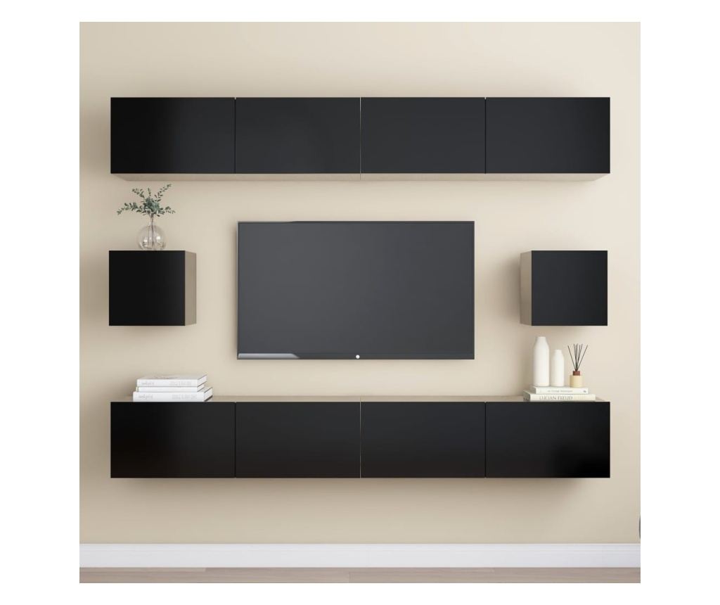 Ovaj zidni set TV ormarića, opremljen s dovoljno prostora za pohranu za organiziranje raznih predmeta, sigurno će biti praktičan i atraktivan dodatak vašem domu.