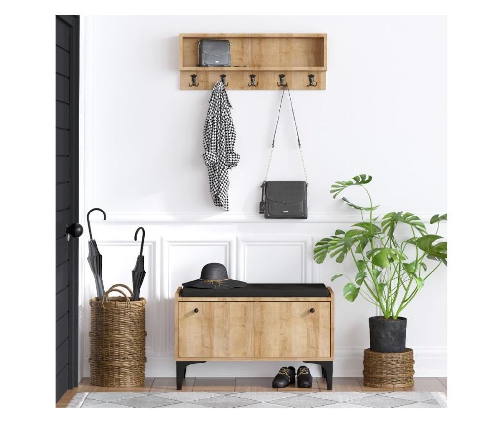 Opremite svoje predsoblje sa ovom prakitčnom modernom vješačicom i ormarićem za cipele u boji hrasta a. Namještaj je narpavljen od iverice presvučene u melamin debljine 18 mm. Dimenzije ormarića su 80 x 49 x 35 cm, dimenzije vješalice 80 x 30 x 15cm. Jednostavna montaža.
