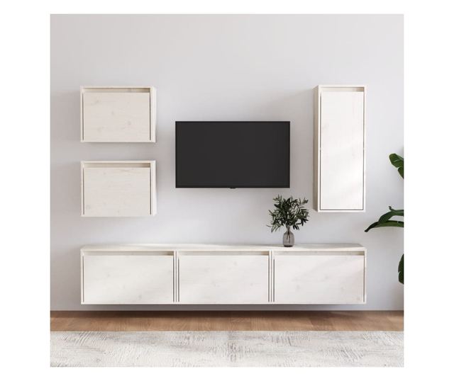 TV komode, bijela, 6 kom., masivno drvo bora